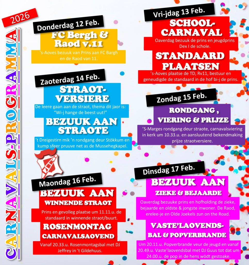 Carnavalsprogramma 2026 Geplaatst op9 januari 20269 januari 2026Authoradmin Carnaval 2026: Wi-j hange de beest uut!